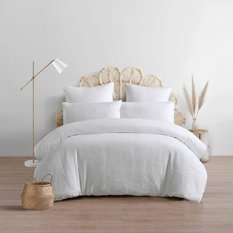 Complete your bedroom with this luxurious Chyka Home Moonah Cotton Jacquard Quilt Cover Set King Bed, a stylishly elegant quilt cover set to match any dΓ©cor. Crafted from a cotton jacquard fabric with a 300 thread count cotton reverse, lie back in luxury with the Chyka Home Moonah Set.