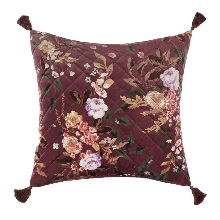 Decadent and deeply romantic, the print on the Linen House Cecilia European Pillowcase exudes vintage style with its hand-painted floral in saturated hues of lilac, brandy and terracotta on quilted velvet. Elevate this showstopping pillowcase with corner tassels with its matching bed linen and tasselled velvet cushion for added sophistication.