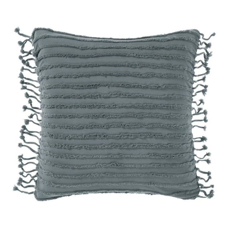 The reinvented chenille Linen House Dunaway European Pillowcase gives prominence to tufted stripes on a woven, speckled cotton ground in contemporary colours. Finished with plaited tassels, this pillowcase looks marvellous adorned with its matching quilt cover set and cushion, each complete with matching tassels.