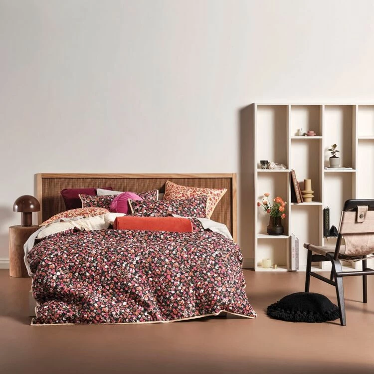 The Linen House Faye Quilt Cover Set Super King Bed is Bringing vintage blooms back into full swing, Faye is the perfect stay-at-home antidote with its striking, hand-rendered floral in tones of black, fuchsia and apricot paired with ginger. Made from quilted Cotton voile, this printed set reverses to a simple stripe and looks charming adorned with coordinating European pillowcases as well as velvet and chunky knitted accessories for more allure. Update your bed today at Harris Scarfe!