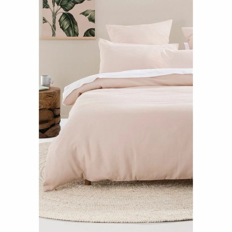 Linen House Providence Waffle Quilt Cover Set Queen Bed Nude Queen
