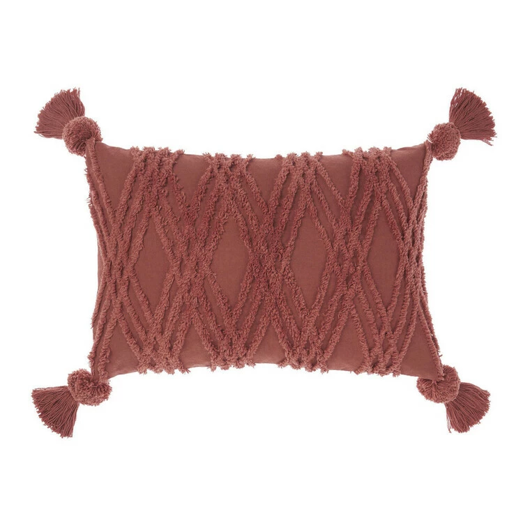 The Linen House Solange Cushion 40x60cm features a distinctive geometric pattern, complemented with stylish corner tassels knotted fringing, making it a quintessential cushion for your bedroom or living space. Made from soft and durable cotton material, pair this decorative piece with more cushions in the same hues or mix up with more colours for an ultra-inviting display.