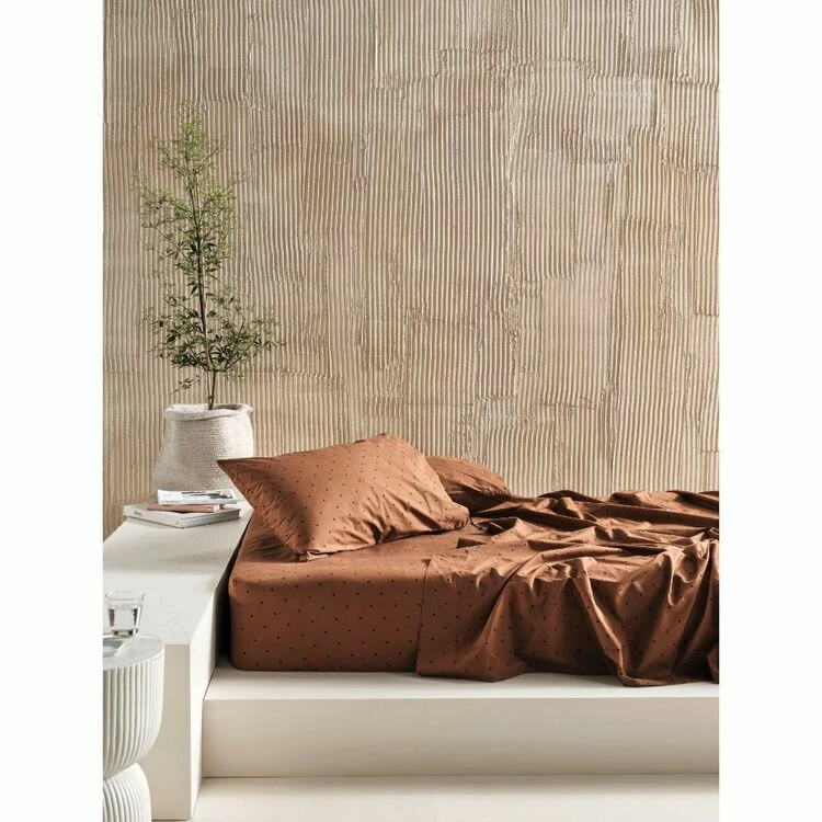 Linen House Vivienne 250 Thread Count Cotton Sheet Set Double Bed Pecan Double