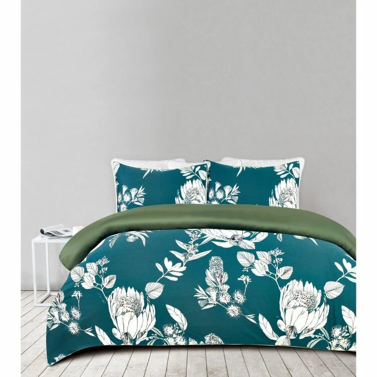 Shaynna Blaze Protea 300 Thread Count Cotton Sateen Quilt Cover Set King Bed Green King